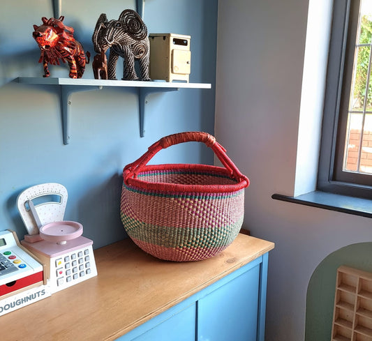 AusverkauftRoter, schwarzer runder Bolga-Einkaufskorb