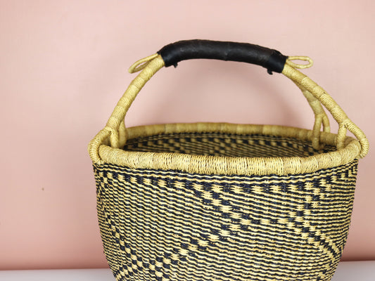 Natürlicher brauner, schwarzer runder Bolga-Korb