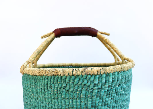 Runder Bolga-Einkaufskorb in Limettengrün, Schwarz und Naturbraun