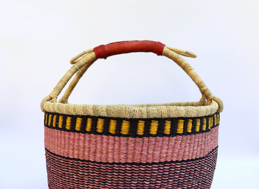 Gelber, naturbrauner runder Bolga-Einkaufskorb
