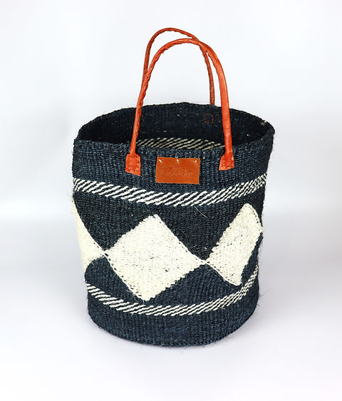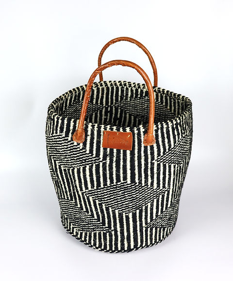 Schwarz-Creme-Diamant, handgewebter Sisalkorb