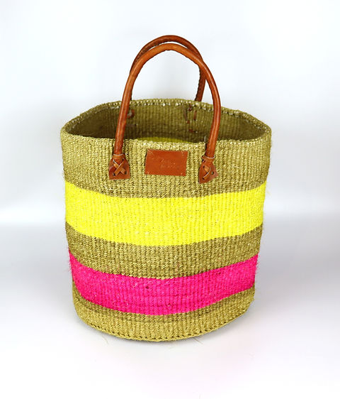 Handgewebter Sisalkorb in Gelb, Rosa und Naturbraun
