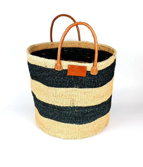 Handgewebter Sisalkorb mit schwarzen und naturbraunen Streifen