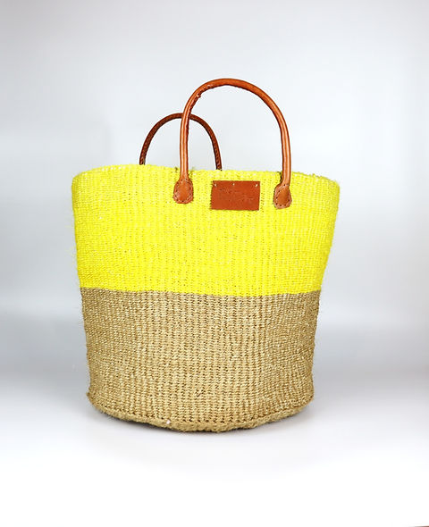 AusverkauftHandgewebter Sisalkorb in Gelb und Naturbraun