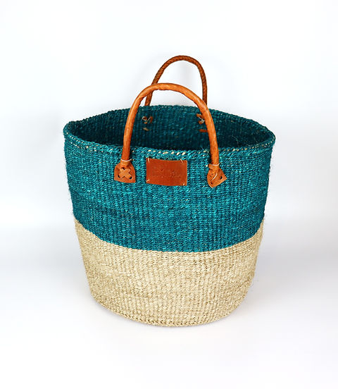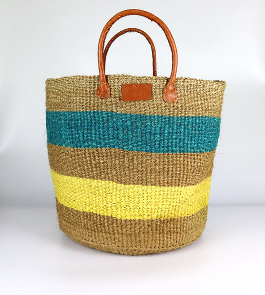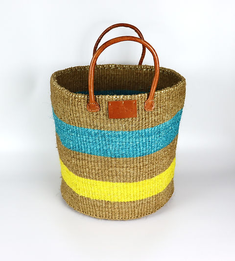 Handgewebter Sisalkorb in Gelb, Blau und Naturbraun