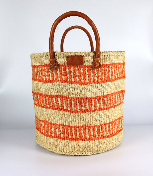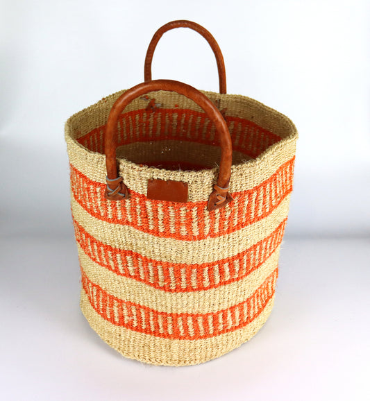 Handgewebter Sisalkorb in Naturbraun mit orangen Streifen