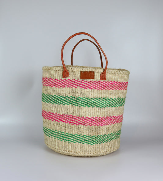 Handgewebter Sisalkorb mit grünen, cremefarbenen und rosa Streifen