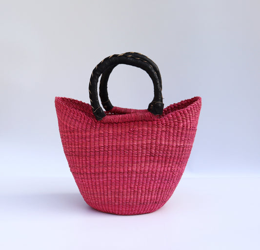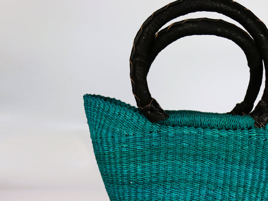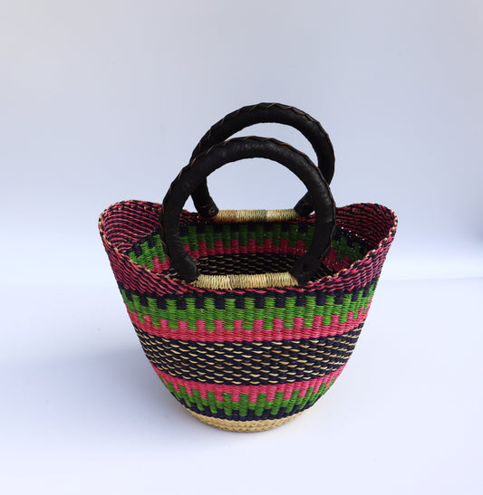 Bolga-Einkaufstasche in offener Webart in Rosa, Türkis und Naturbraun