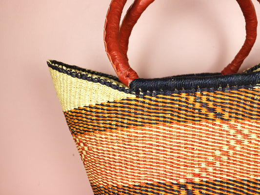 Orange, braune Bolga-Tragetasche mit offenem Webmuster