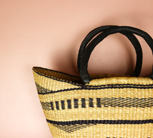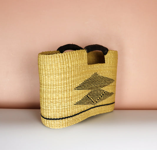 Naturbraune, schwarze Bolga-Tragetasche mit offenem Webmuster