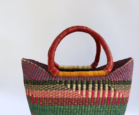 Rot, Schwarz, Naturbraun Offen gewebte Bolga Tragetasche