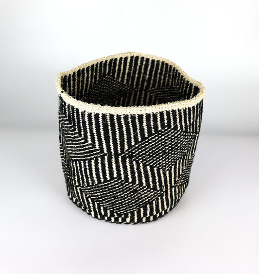 Panier en sisal tissé à la main en forme de losanges noirs et blancs
