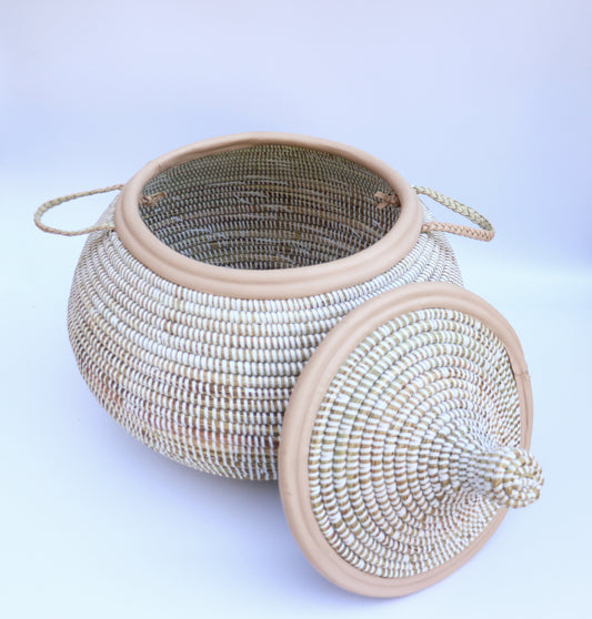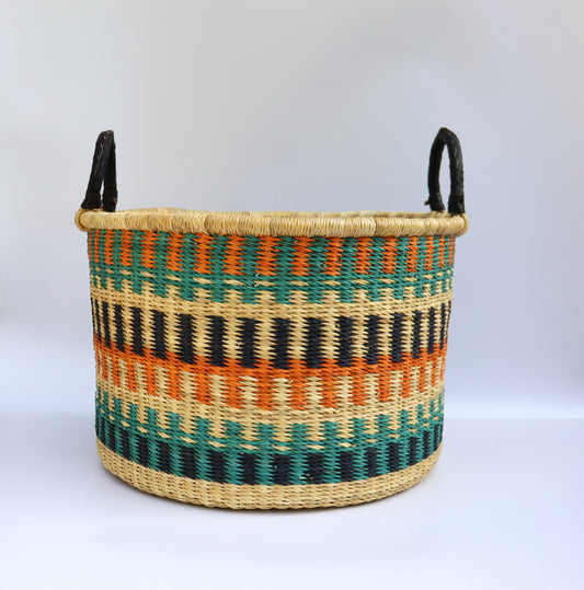 Panier en sisal tissé à la main à rayures noires et marron naturel