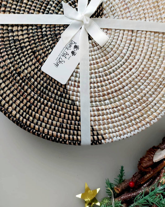 Sac fourre-tout Bolga à tissage ouvert turquoise, noir et marron naturel