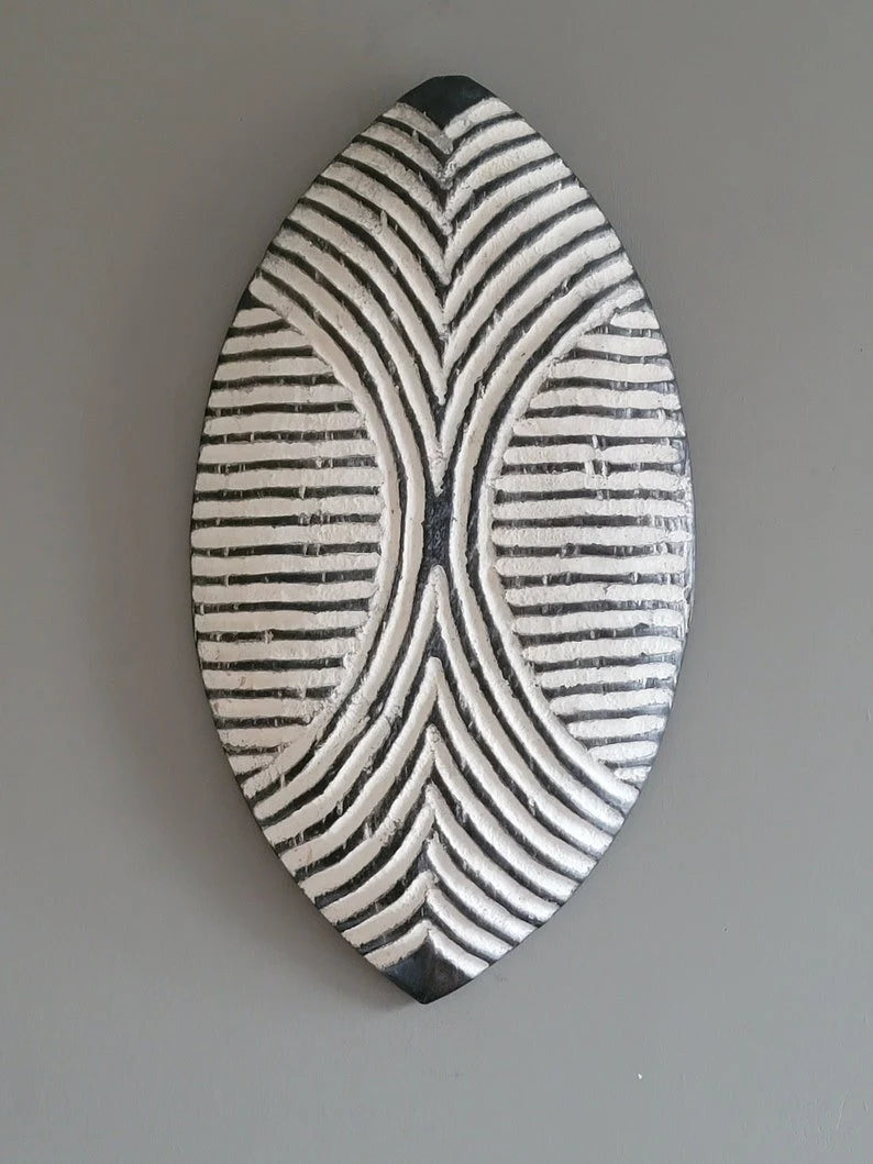 Boucliers et masques en bois d'inspiration zouloue, bamileke et burkinabé