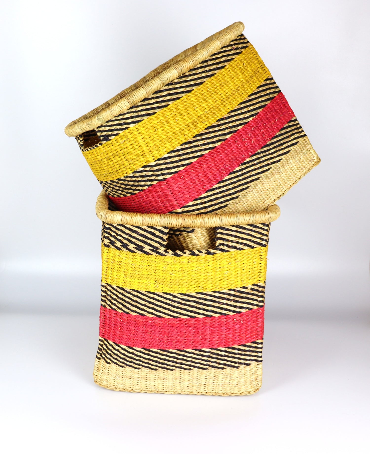 Panier de rangement rectangulaire à rayures roses, jaunes et marron