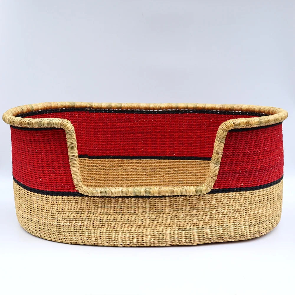Ici, nos paniers pour animaux Bolga sont disponibles dans une variété de motifs et de couleurs, ajoutant un élément esthétique à l'espace de couchage des animaux. Cela peut être attrayant pour les propriétaires d'animaux qui souhaitent une touche élégante et personnalisée. Nous avons également travaillé avec des clients pour créer des paniers pour chiens africains personnalisés en taille, couleurs et motifs. Nos paniers pour chiens ne sont peut-être pas facilement recyclables au sens traditionnel du terme, mais ils sont souvent biodégradables en raison de leurs matériaux naturels, contribuant ainsi à la durabilité environnementale.