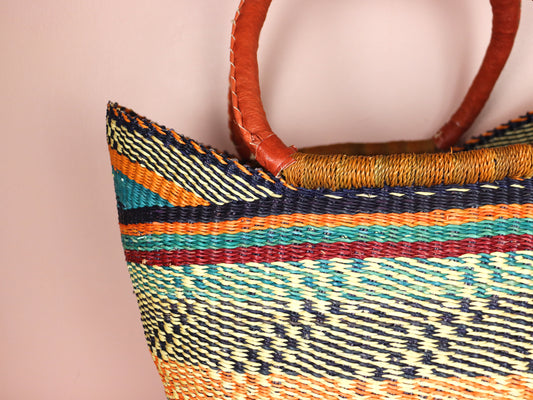 Sac fourre-tout Bolga à tissage ouvert turquoise, orange et noir