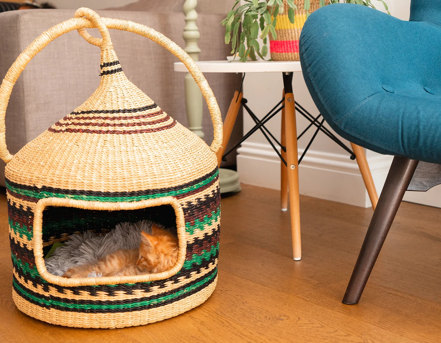 Panier en sisal tissé à la main à rayures orange et marron naturel
