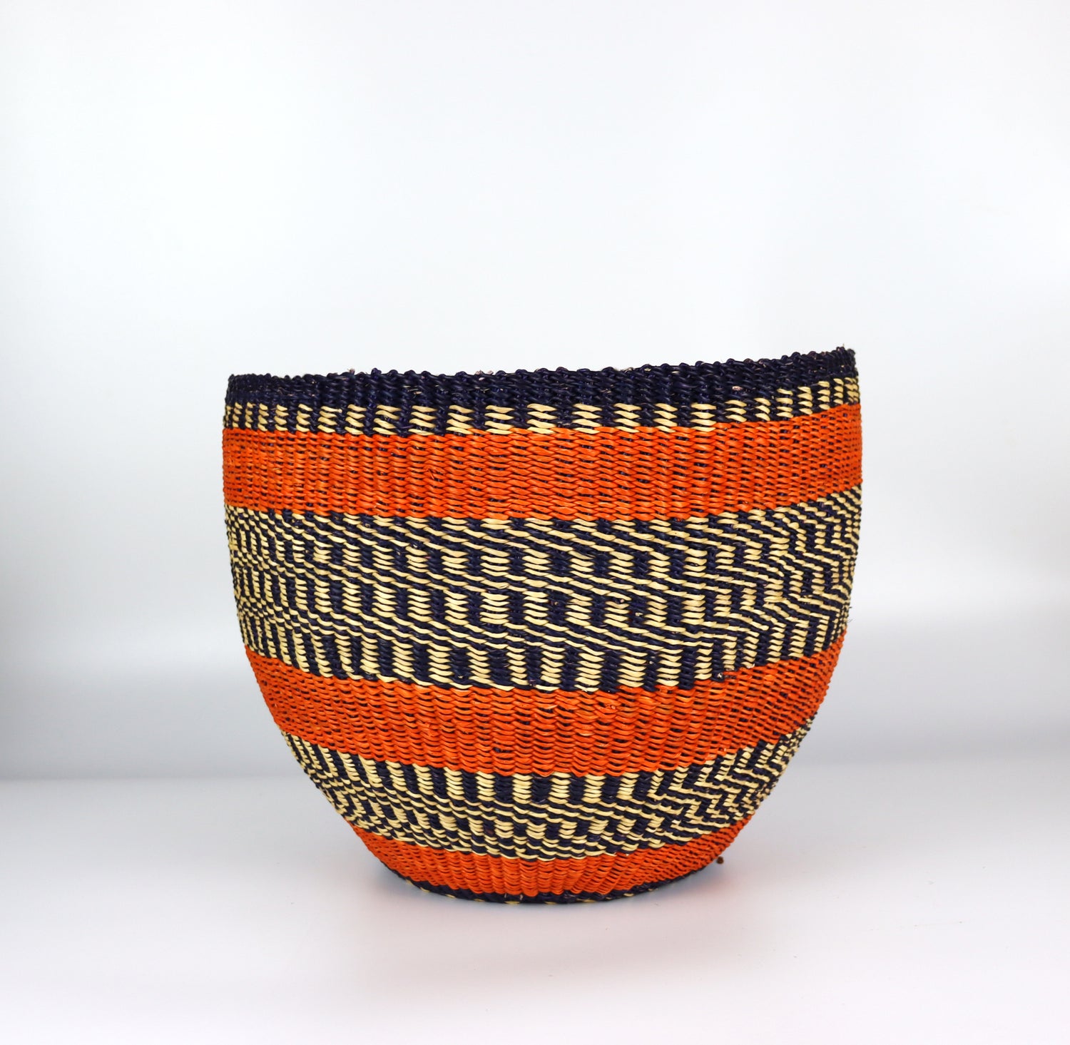 Panier en sisal tissé à la main à rayures orange et marron naturel