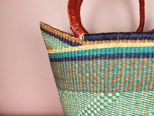 Pink, Turquoise, Natural Brown Open Weave Bolga Tote Bag