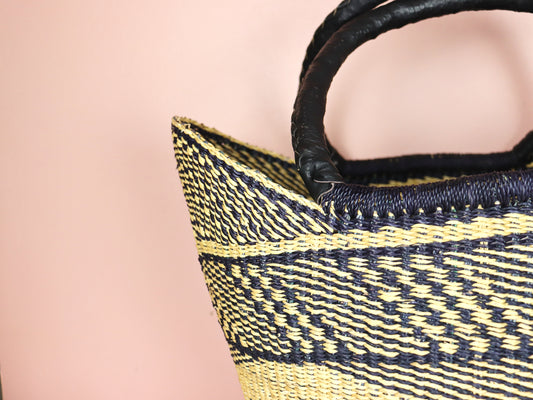Black, Natural Brown Open Weave Bolga Tote Bag