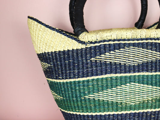 Emerald Green, Black, Natural Brown Open Weave Bolga Tote Bag